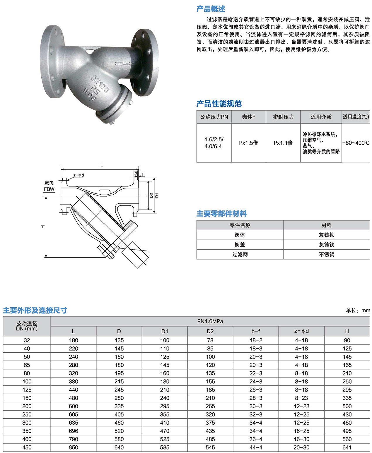 公稱壓力:1.6、2.5、4.0、6.4MPa