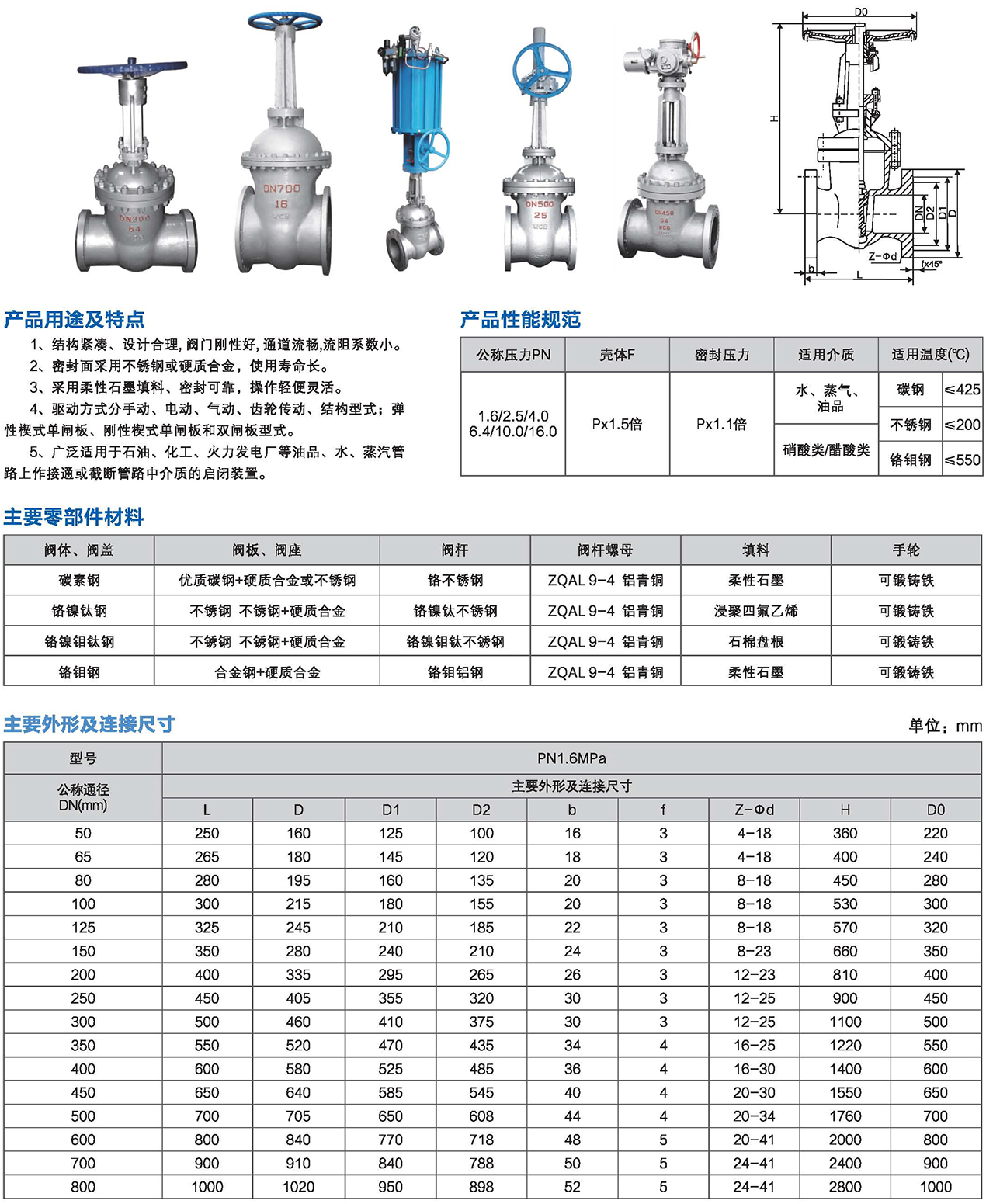 公(gong)稱壓力:1.0、1.6、2.5、4.0、6.4MPa