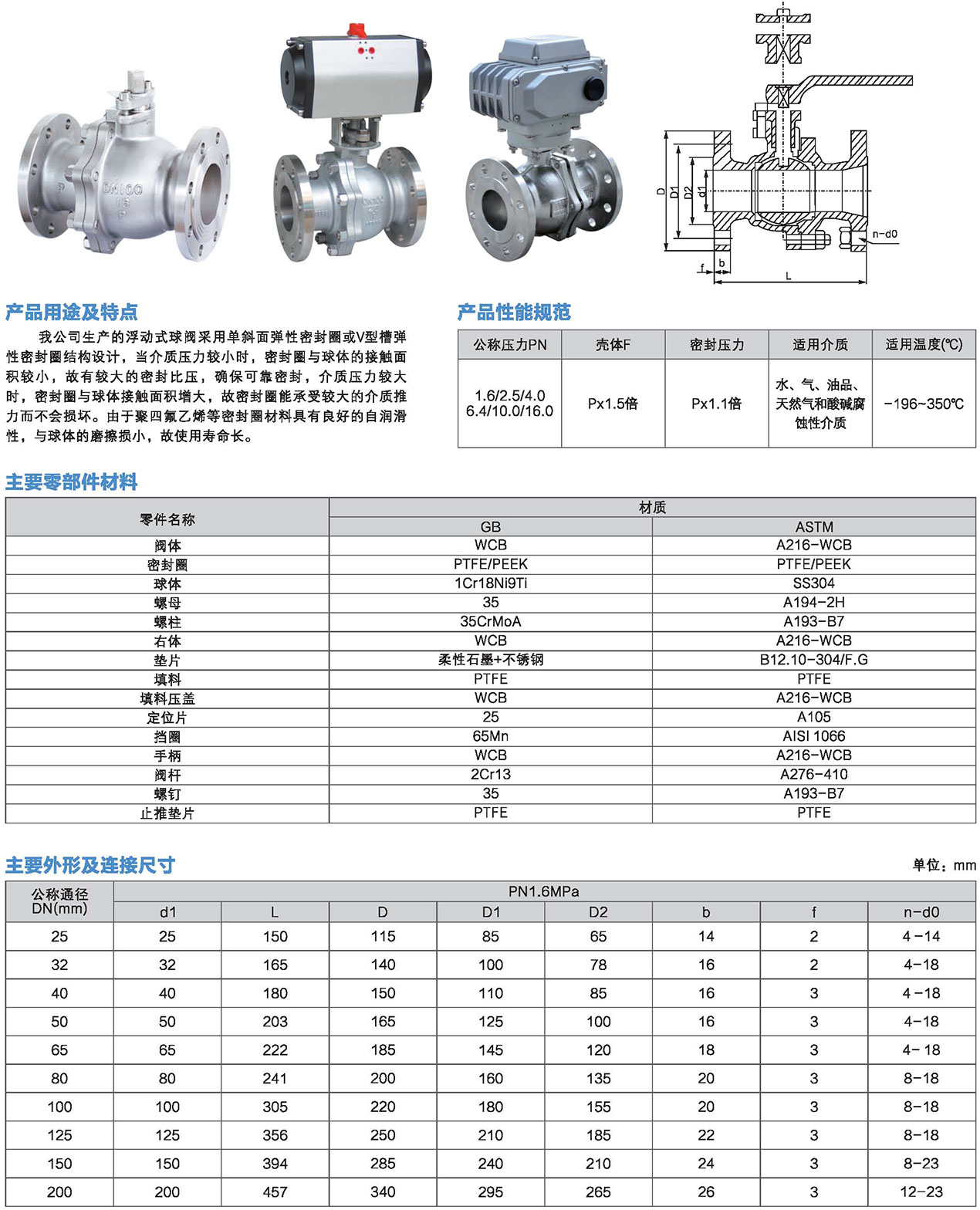 公(gōng)稱壓力(li):1.0、1.6、2.5、4.0、6.4、10.0MPa